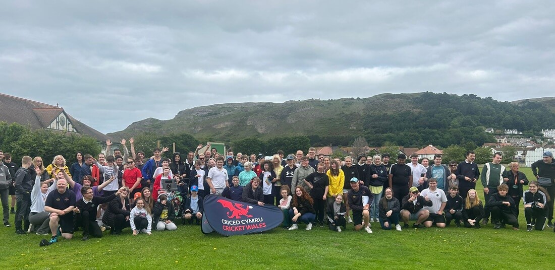 William and Colin of Llandudno CC helping Joe Lambe and Cricket Wales North, presetation given by AM, Janet Finch-Saunders. Three Schools attended, Ysgol y Gogarth with Ysgol Tir Morfa and Ysgol Pendalar.