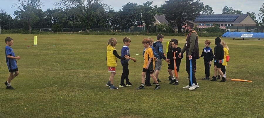 53 Juniors having an "Introduction to Cricket" session and a quiz at the club house.
