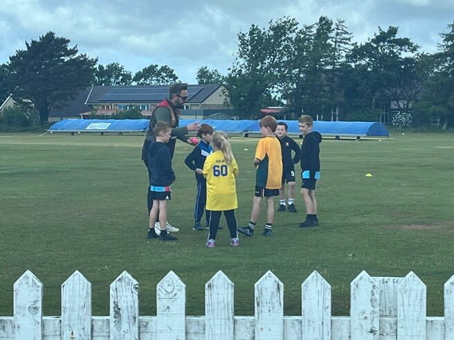 53 Juniors having an "Introduction to Cricket" session and a quiz at the club house.